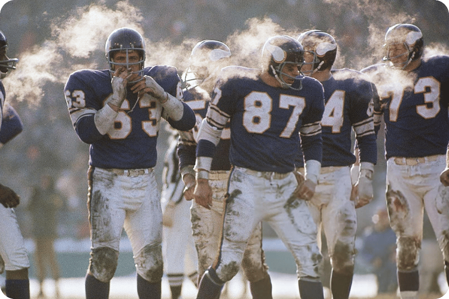 This NFL Championship game was between the 12-2 Minnesota Vikings and the 10-3-1 Cleveland Browns. It was hosted in Minnesota and would have been remembered as one of the coldest games in NFL history with a −6 °F windchill if it wasn’t for the Ice Bowl being played just two years prior.