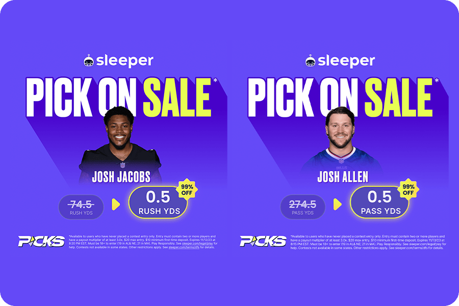 And right now on Sleeper, you can take Josh Jacobs to rush for more than 1 yard or Josh Allen to throw for more than 1 yard when you sign up with my code TYLERWEBB.