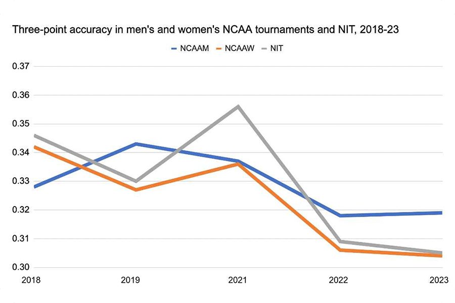 But even though some players and coaches might point to historical tournament 3-point shooting percentages to convince you that it has gotten worse since the introduction of these new basketballs, I donât think the balls are to blame.